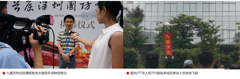 深圳市特種產(chǎn)業(yè)協(xié)會(huì)秘書長(zhǎng)趙熙在采訪中表示,今年是中國(guó)人民抗日戰(zhàn)爭(zhēng)暨世界反法西斯戰(zhàn)爭(zhēng)勝利70周年。為了紀(jì)念70年前那場(chǎng)艱苦卓絕的民族抗戰(zhàn),銘記歷史、緬懷先烈、珍愛(ài)和平、開(kāi)創(chuàng)未來(lái),深圳市特種產(chǎn)業(yè)協(xié)會(huì)在深圳市國(guó)防科技工業(yè)辦公室、南山區(qū)政府的悉心指導(dǎo)以及社會(huì)各界的關(guān)懷下,組織深圳軍工相關(guān)企業(yè),隆重舉辦“首屆深圳國(guó)防書畫展”。深圳九星天利科技有限公司作為軍工企業(yè)的無(wú)人機(jī)科技行業(yè)的佼佼者,也被邀請(qǐng)為此次展會(huì)的特約嘉賓。