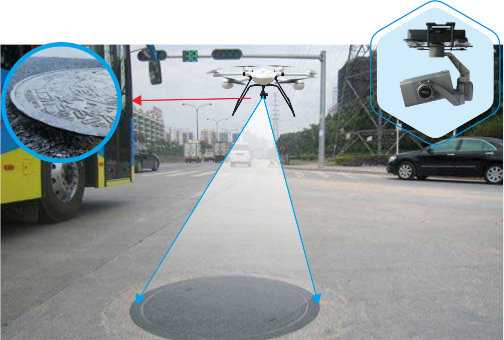 無人機(jī)搭載30倍高清變焦相機(jī)在巡邏的過程中,可以在高空遠(yuǎn)距離識(shí)別道路上的井蓋等公共設(shè)施是否遭到非法人員破壞或盜取,還可以查看是否有人非法往雨水管道排放污水,用消防栓取水等。一經(jīng)發(fā)現(xiàn),立刻派遣相關(guān)人員到達(dá)指定地點(diǎn)進(jìn)行處理,大大節(jié)省了人力,提高了工作效率。