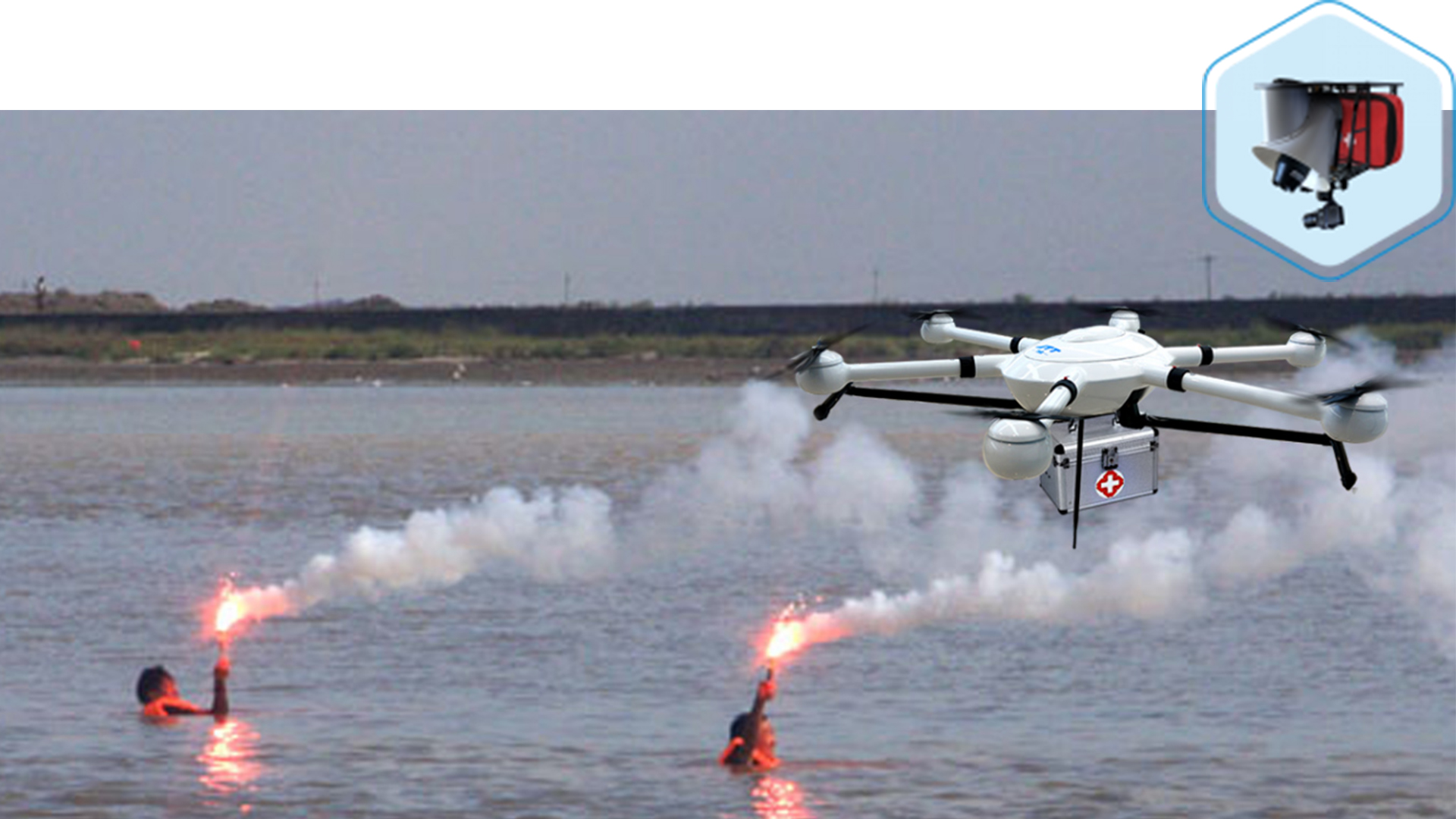 當(dāng)在海上遇到突發(fā)狀況時(shí),無(wú)人機(jī)可搭載四合一掛載在事發(fā)高空盤旋監(jiān)控,實(shí)時(shí)傳送圖像信息至指揮中心,指揮中心可以對(duì)現(xiàn)場(chǎng)進(jìn)行指揮救援行動(dòng),并且可以空頭一系列救援物品給需要救助的人員。還可以通過(guò)四合一種的喇叭對(duì)現(xiàn)場(chǎng)需要救助人員進(jìn)行疏導(dǎo)和安慰。
