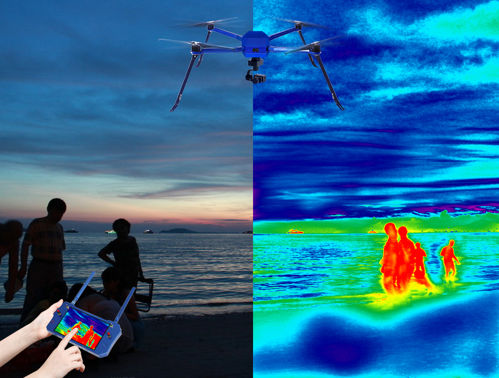 在夜晚的巡邏當(dāng)中,搭載的紅外熱成像儀,通過顏色、形狀、動作辨別人體的位置和狀態(tài),協(xié)助分析是否處于危險狀態(tài)當(dāng)中。