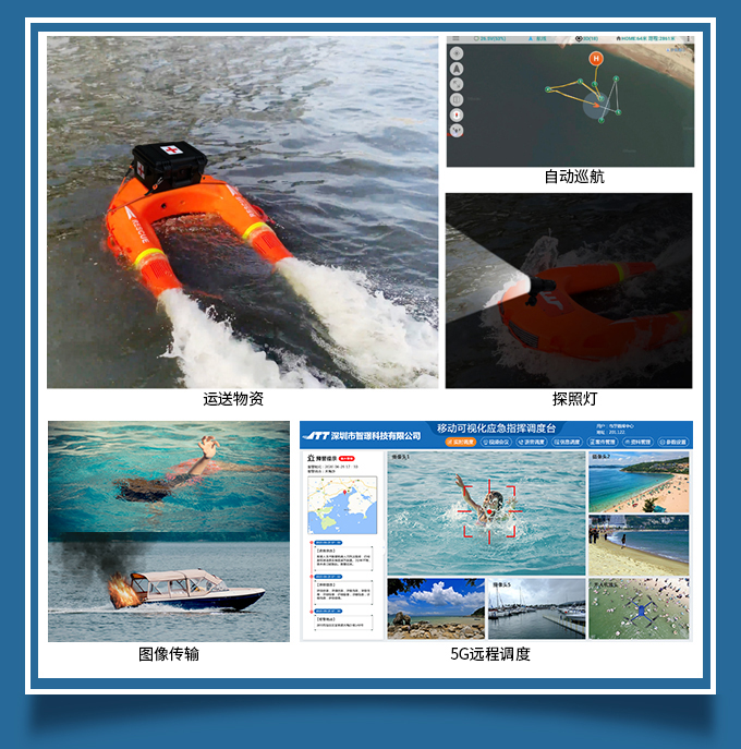 空海一體模式:救援機(jī)器人能跟無(wú)人機(jī)配合實(shí)現(xiàn)空海一體模式,無(wú)人機(jī)能清晰傳回前方視頻,救援機(jī)器人能夠按照無(wú)人機(jī)飛行軌跡跟隨航行,實(shí)現(xiàn)遠(yuǎn)距離救援