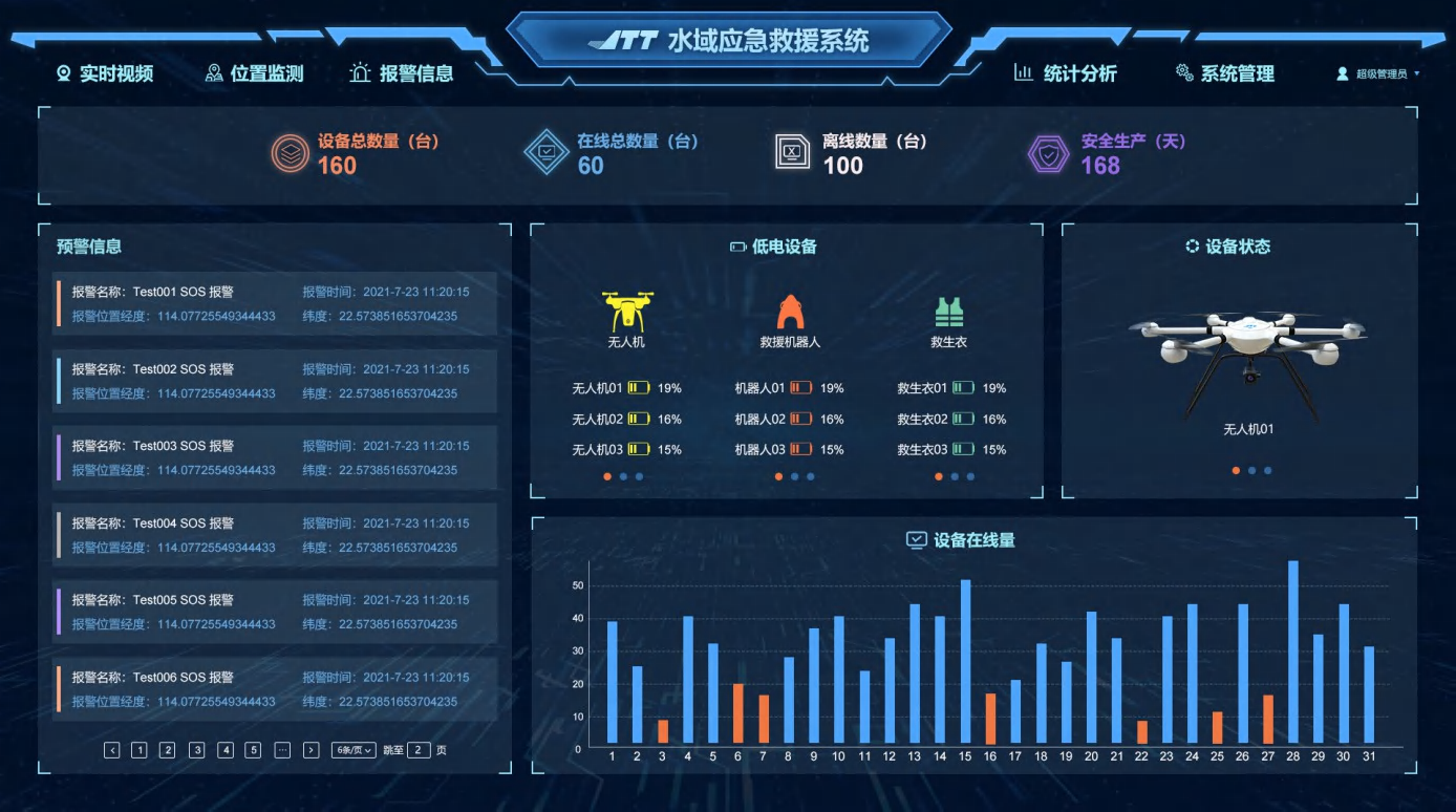 水域應(yīng)急救援系統(tǒng)采用C/S、B/S混合式、多層系統(tǒng)架構(gòu),將水域應(yīng)急救援系統(tǒng)(空中巡查系統(tǒng),水域救援系統(tǒng),作業(yè)平臺AI安全預(yù)警系統(tǒng),救援人員防溺水監(jiān)測系統(tǒng)等)、報警聯(lián)動等全部融合形成統(tǒng)一的平臺系統(tǒng),滿足了水域的應(yīng)急救援需求,大大降低了系統(tǒng)使用難度、管理效率顯著提升。水域應(yīng)急救援系統(tǒng)前端救援設(shè)備包括水域AI攝像機、救援無人機、水上救援機器人、水上救援艇、智能定位報警救生衣、停機坪、太陽能充電板等,組成空中、水面立體化救援網(wǎng)絡(luò),應(yīng)對不同的水域救援場景需求。可廣泛應(yīng)用于抗洪救災(zāi)、海邊安全保障、水域管理、消防、交通指揮、邊防巡邏、應(yīng)急管理、部隊、大型保障等。