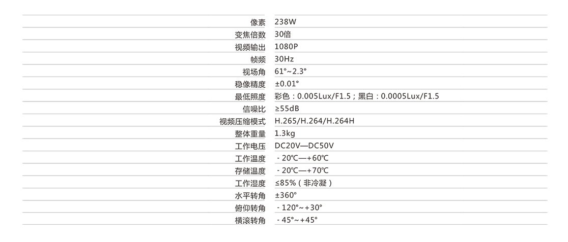 30倍可見光夜視變焦相機 高清變焦可以用于高空遠距離識別目標,成像清晰,應用于公安處突、電力巡檢、交通執(zhí)法、 目標車輛號碼識別、禁毒緝私等。