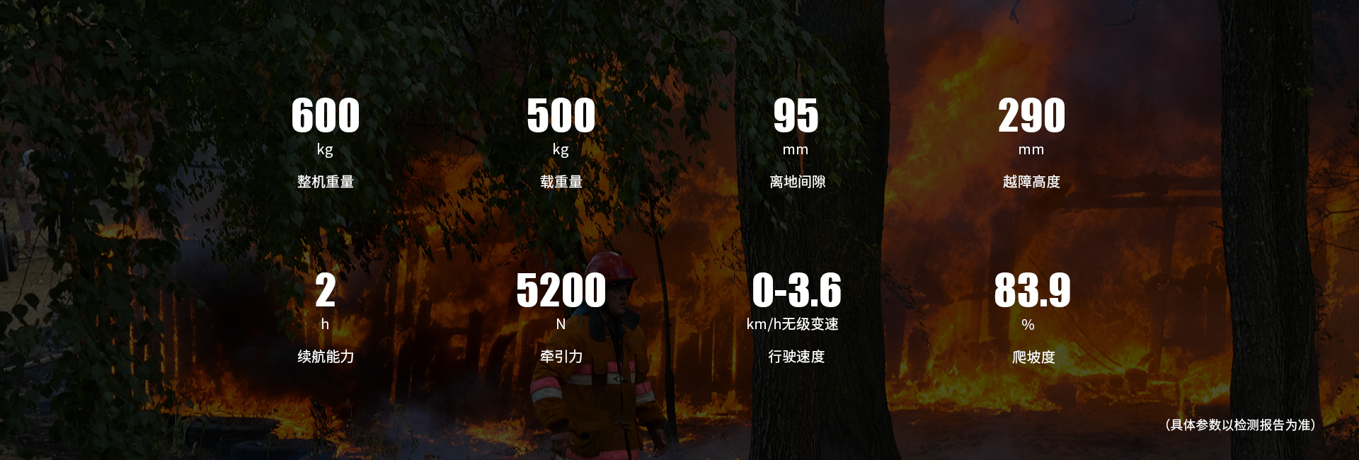 · 牽引力大:可拖動(dòng)兩條100m長(zhǎng)充滿水的φ80水帶行走;