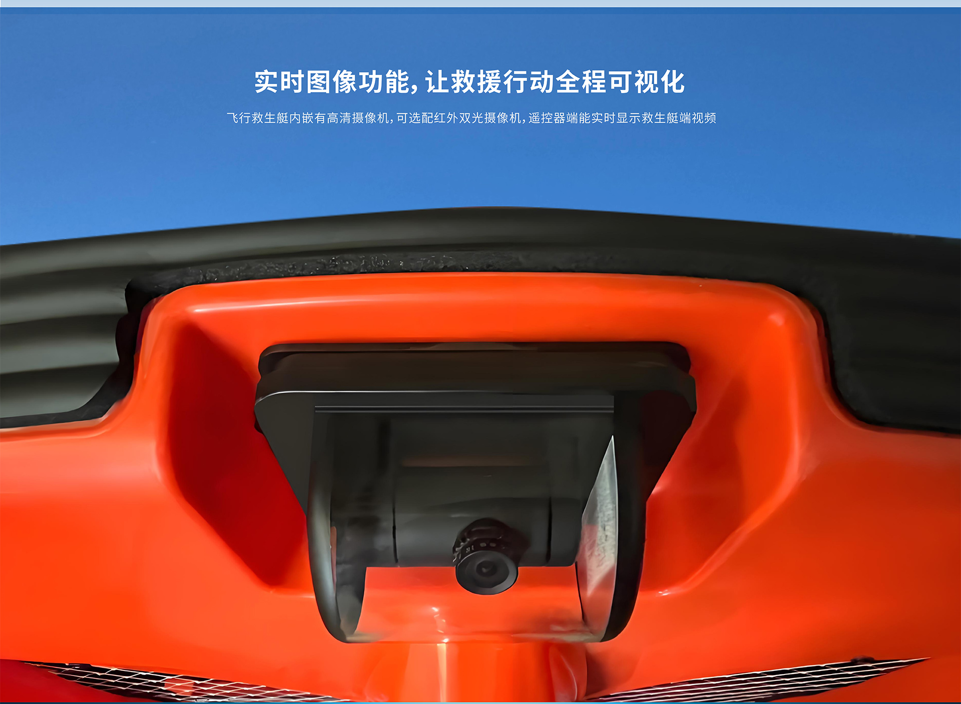 操作,上電后一鍵起飛。救生圈上面搭載了 360 度的云臺(tái),在操作手柄上可以看到實(shí)時(shí)傳
